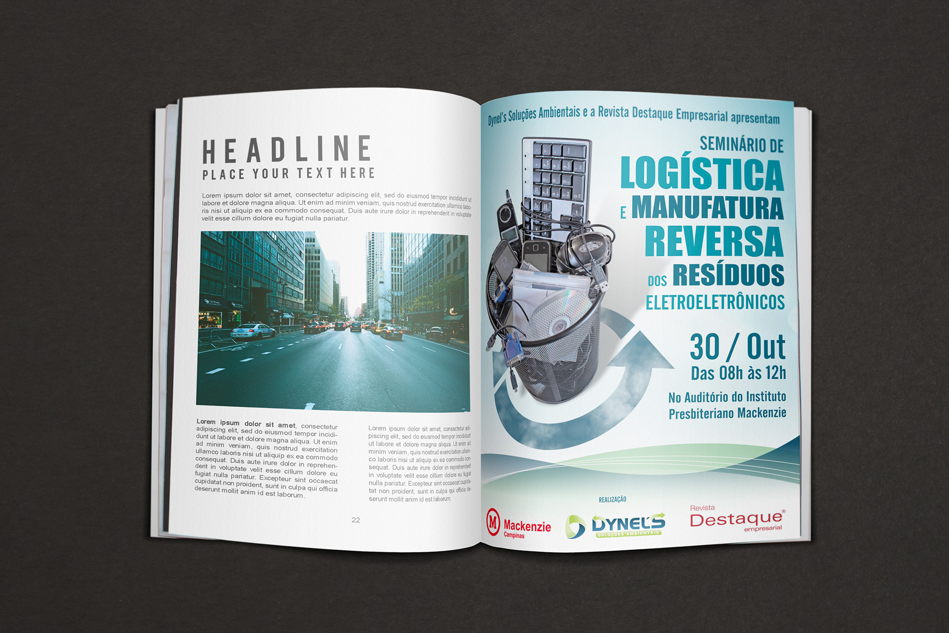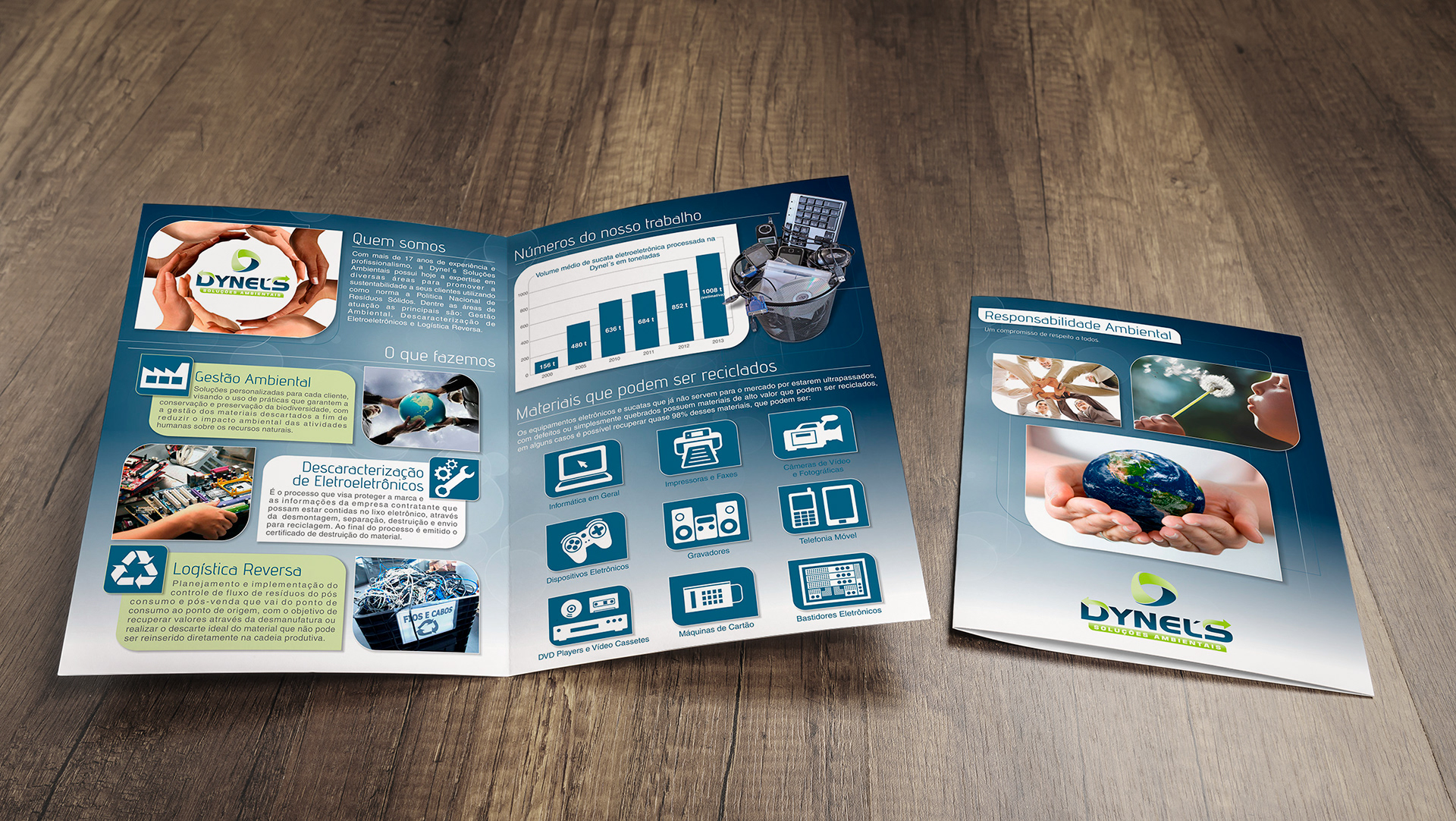 Criação da nova imagem da logomarca Dynel's Soluções Ambientais e seus materiais de divulgação.
